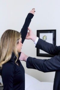 - Difficulty lifting the arm, reaching overhead, or performing everyday tasks like brushing hair or dressing
